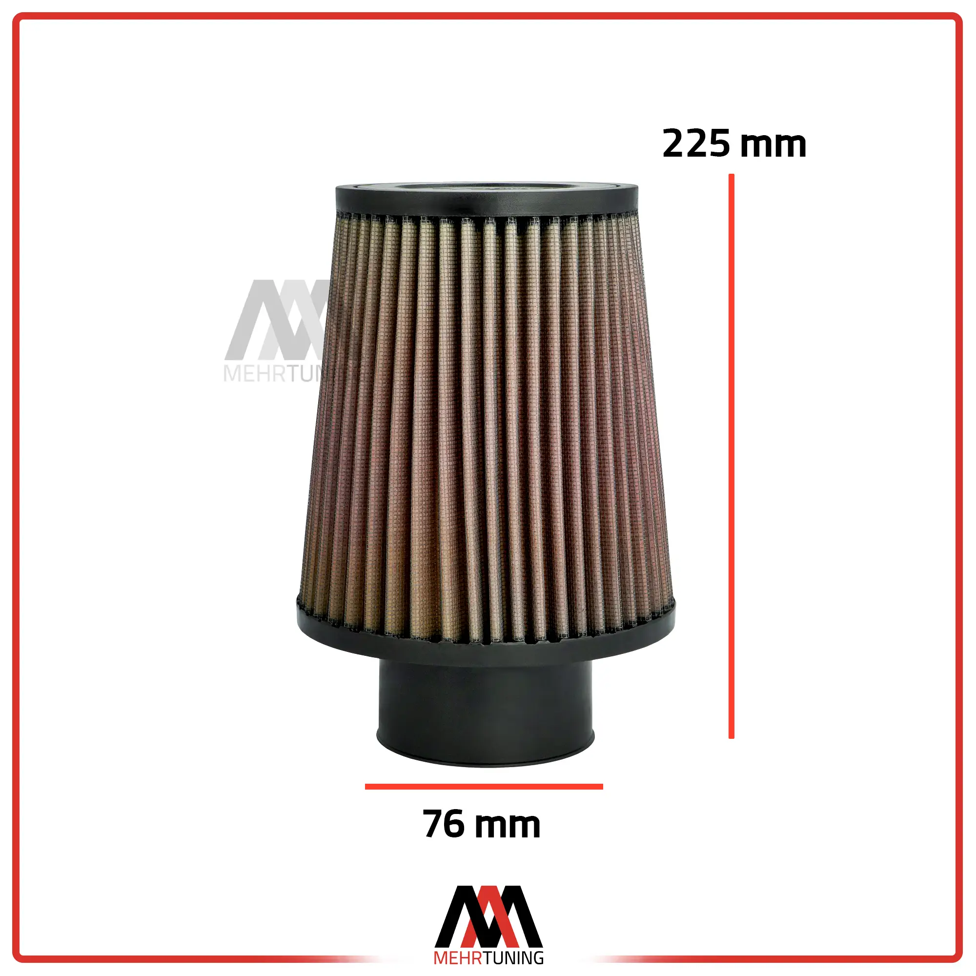 به موجب این امر محافظت از موتور و در نتیجه افزایش عمر آن رخ خواهد داد. ارتفاع دقیق فیلتر هوای مذکور برابر 25 سانتیمتر است که طبیعتا سطح بیشتری برای جذب آلودگیها داشته و گردش جریان هوای بهتری ایجاد میکند. همچنین قطر آن برابر با 4 اینچ بوده که بزرگتر از حد معمول بوده و بنابراین برای خودروهای قدرتمند مناسبتر است.