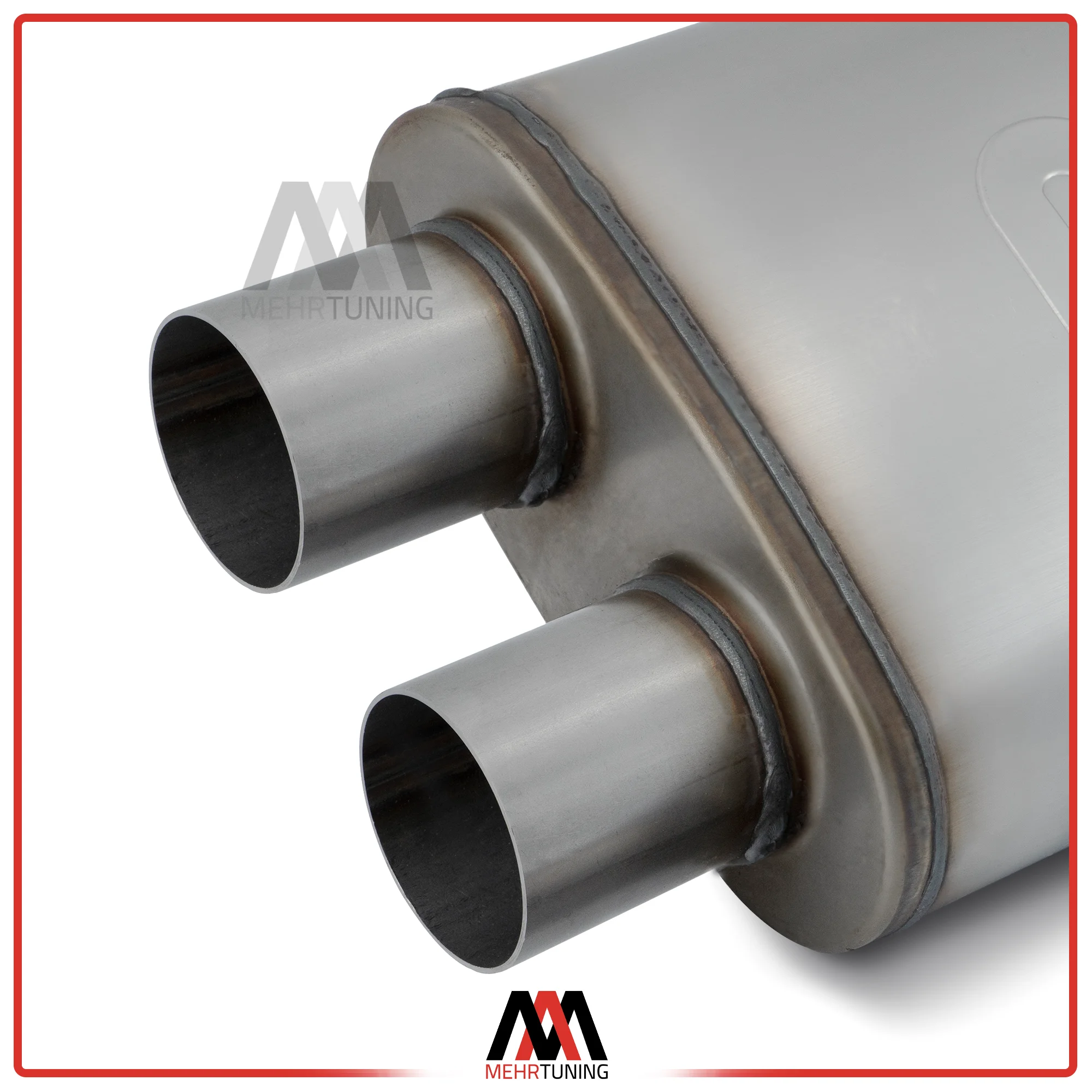 این سنتر اگزوز با طراحی دو به دو برای خودروهایی طراحی شده که نیاز به جریان دود در چهار مسیر مجزا دارند. طول ۳۵۵ میلیمتر این مدل، برای ایجاد صدای عمیق و نرم با کاهش نویز اضافی مؤثر است و هماهنگی خوبی با سایر اجزای اگزوز ایجاد میکند.
