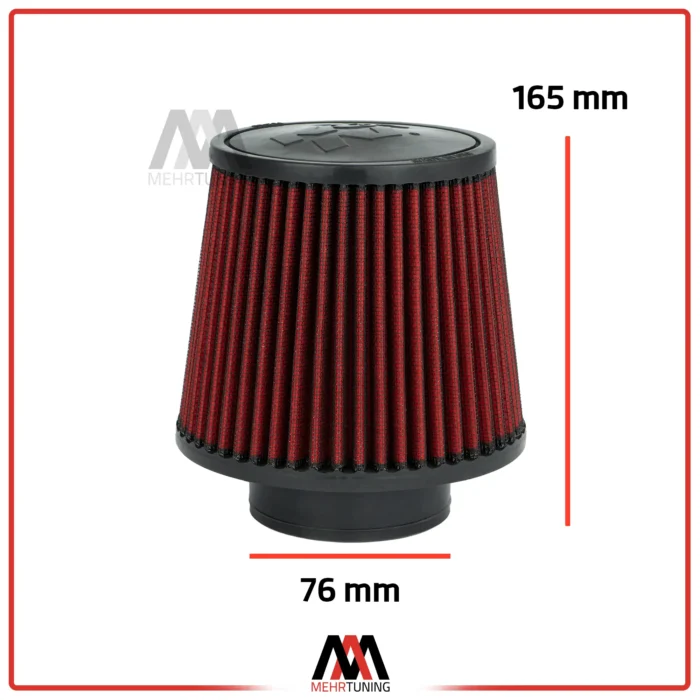 فیلتر هوای ماشین دهانه 76میل مدلی دیگر از انواع فیلترهای هوای اسپرت از این برند است که در دسته سیستم هوادهی خودرو قرار دارد. این فیلتر به سبب داشتن طراحی منحصر به فرد خود قادر است حجم هوای بیشتری را به موتور برساند. همچنین به علت دارا بودن کیفیت بالای فیلتراسیون خود هوای پاکیزه و خالصتری را به موتور وارد میکند. افزایش جریان هوای مورد نظر به بهبود عملکرد دریچه گاز نیز کمک نموده و واکنش سریعتر آن هنگام فشردن فشار را منجر خواهد شد.