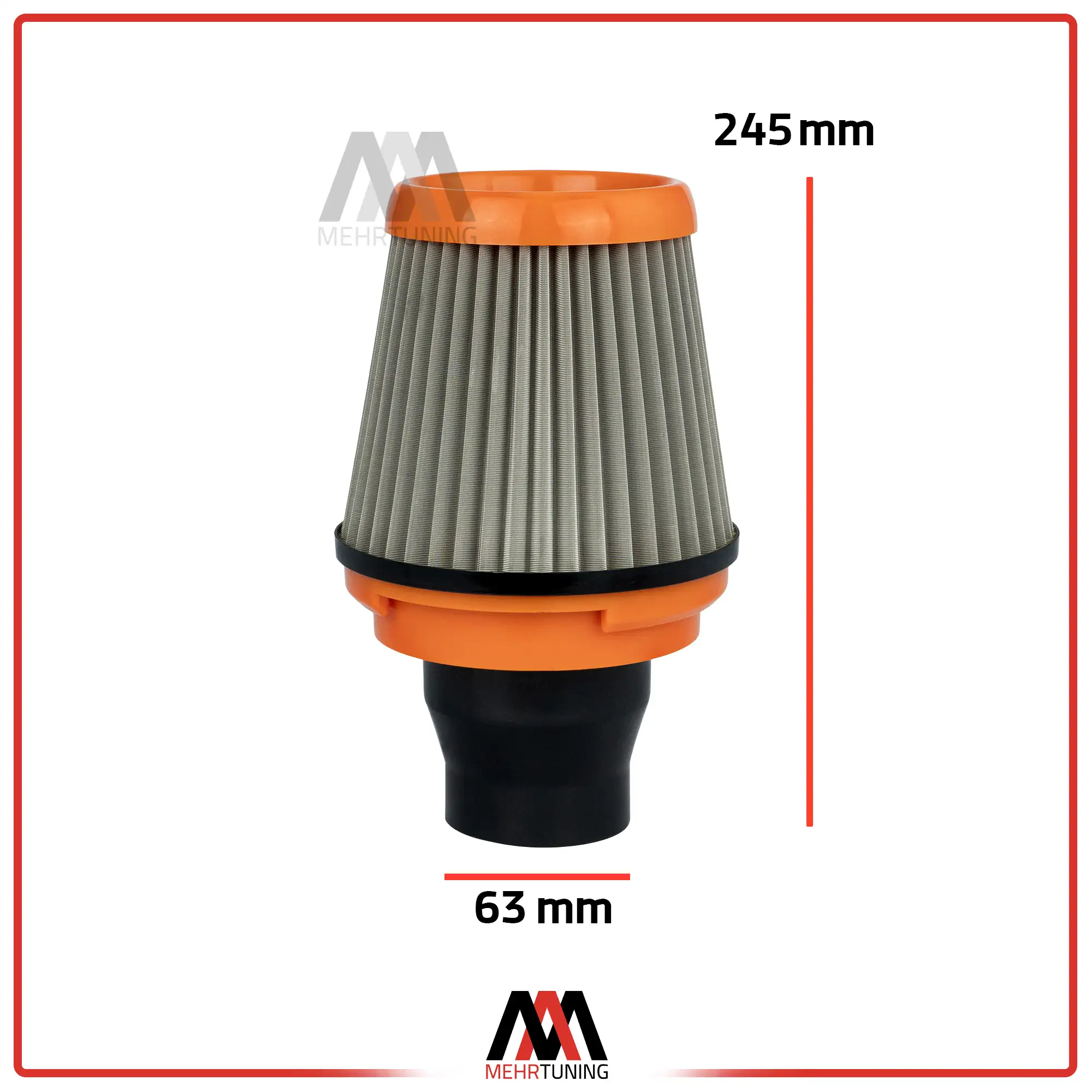 همچنین به علت افزایش گردش جریان هوا موتور واکنش سریعتری به پدال گاز نشان میدهد. این امر از اهمیت بالایی به خصوص در اتومبیلهای اسپرت و تیونینگ شده برخوردار است. ویژگی حائز اهمیت دیگر فیلتر هوا یونیورسال بلند نارنجی هم داشتن توری قرمز رنگ با قابلیت شستشو میباشد. الیاف به کار رفته در تولید فیلتر مورد نظر قابل شستشو هستند و این امر موجب کاهش هزینههای نگهداری خودرو و همینطور کمک به محیط زیست خواهد شد.