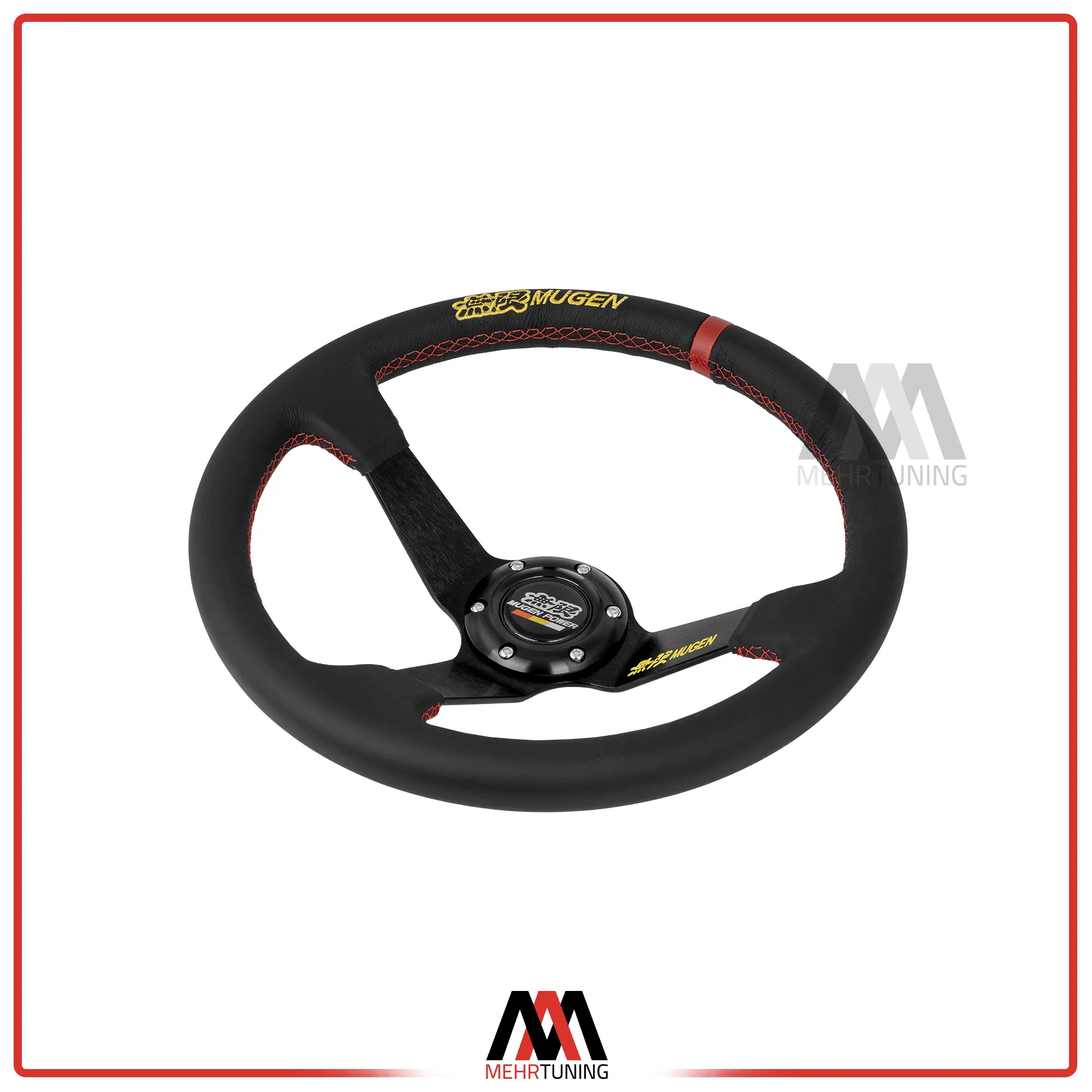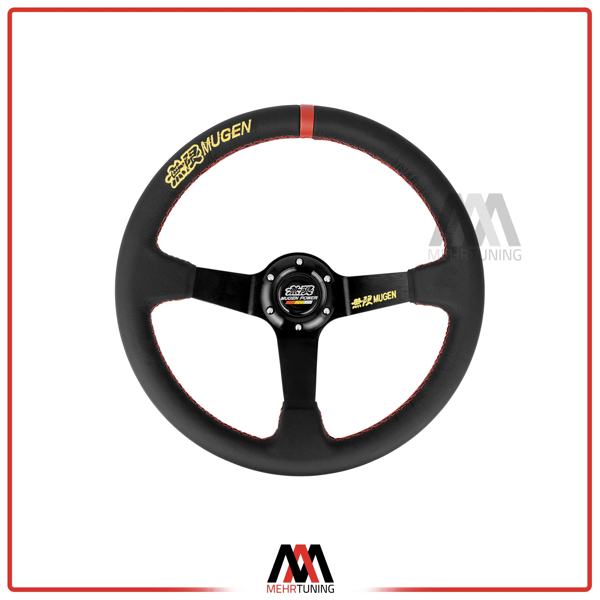 این فرمان دریفت Mugen با روکش چرمی و فرم ارگونومیک برای رانندگی اسپرت و کنترل دقیق در مانورهای پیچیده طراحی شده است. قطر مناسب و پروفیل اسپرت رینگ، تماس مستقیم دست با سطح فرمان را تضمین و پایداری کنترل را در شتابهای جانبی افزایش میدهد. دوخت دقیق چرمی دوام سطحی بالا و حس لمس پایدار در شرایط عملیاتی مختلف فراهم میآورد، در حالی که ساختار داخلی صلب پاسخدهی فوری به ورودی راننده ارائه میکند.